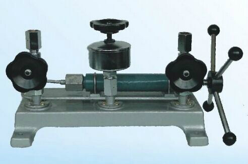 (2)關閉閥,打開油杯閥,并將手搖泵螺桿全部旋入氣缸。