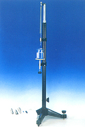 在裝有水平調(diào)節(jié)螺絲的在足座上,豎直裝一套筒,套筒頂端安裝帶有刻度的游標(biāo),筒內(nèi)插入刻有毫米刻度尺的鋼管,利用旋扭通過(guò)里面的滑輪,鏈條可以調(diào)節(jié)刻度鋼管在套筒中升降,從而可以讀出彈簧長(zhǎng)度的變化。